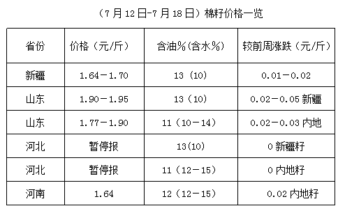 上周(7月12-18日),豆油、豆粕期貨震蕩反彈,刺激現(xiàn)貨行情上漲,棉油、棉粕高位持價(jià)有漲。因棉籽價(jià)格高位上行,油棉廠經(jīng)營(yíng)盈利不佳,市場(chǎng)收購(gòu)積極性不高,棉籽成交量有限,油棉廠延續(xù)較低開工率,市場(chǎng)加工保持相對(duì)冷清狀態(tài)。目前,離新棉籽集中上市時(shí)間仍有三月之久,未來棉籽、棉副仍將保持相對(duì)高位之勢(shì)運(yùn)行。