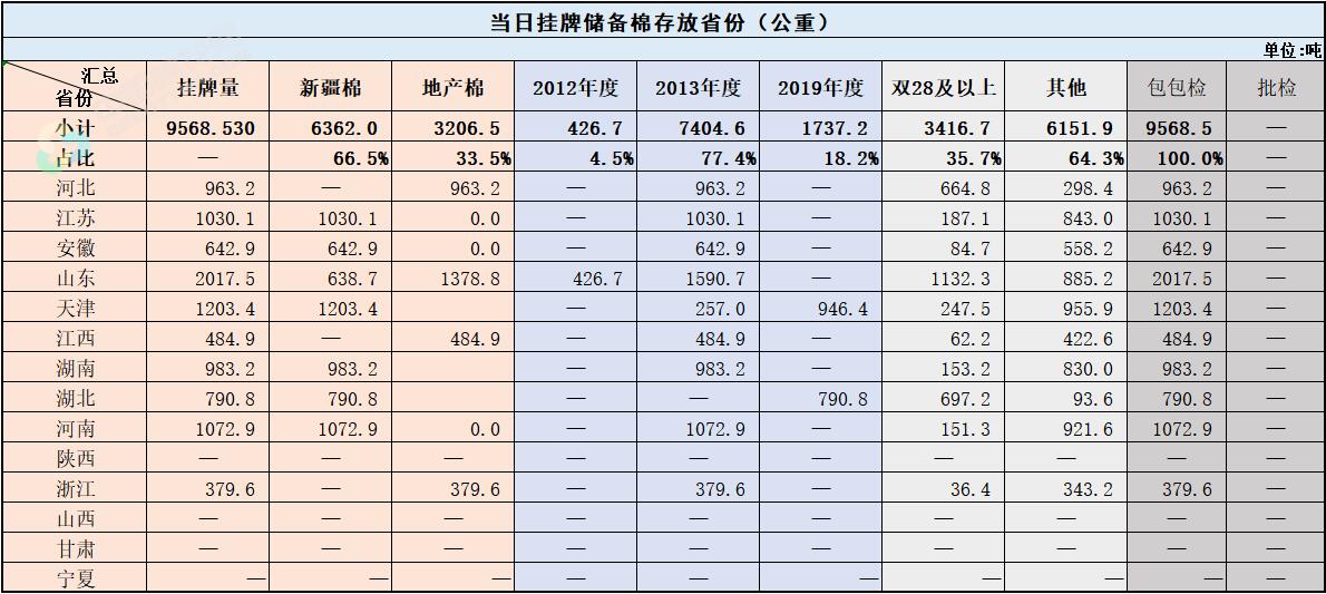 中國儲(chǔ)備棉管理有限公司定于7月26日上市銷售儲(chǔ)備棉重量9568.5296噸,共33捆,其中新疆棉6362.02噸。