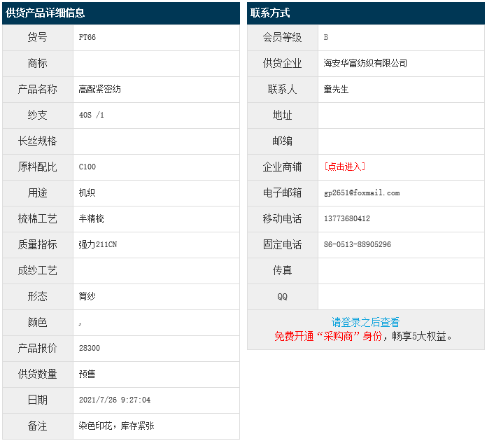 錦橋紡織網(wǎng)7月26日行情速遞: