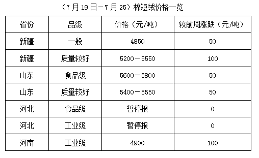 上周,棉籽資源量愈加不足,價格高位難下,油棉廠加工利潤不佳,收購積極性不大,市場開工率較低,棉短絨產(chǎn)出量較少,廠家持貨挺價,個別低位有漲。但下游化纖廠、精制棉廠隨用隨購策略持續(xù),市場成交少量,限制棉短絨高位上漲幅度。新棉籽上市前,棉短絨貨少持價狀態(tài)仍將持續(xù)。