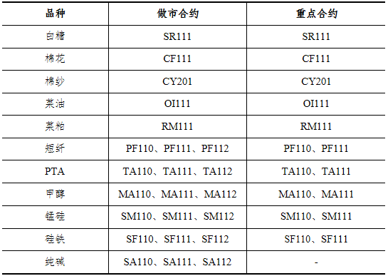 表2021年8月各期貨品種做市合約和重點(diǎn)合約