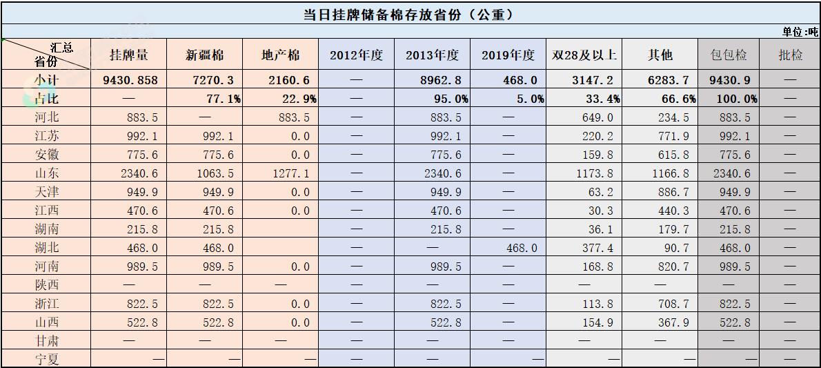 中國儲備棉管理有限公司定于8月4日上市銷售儲備棉重量9430.858噸,共37捆,其中新疆棉7270.27噸。