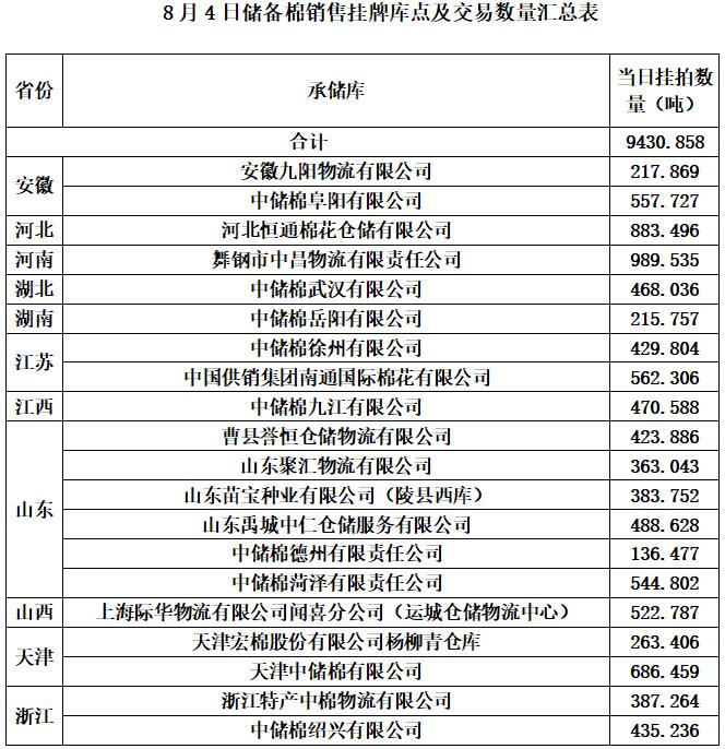 1、8月4日上市銷售儲備棉數(shù)據(jù)明細(xì)表(包包檢)