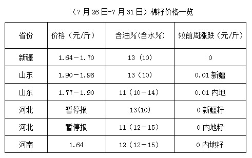 上周,內(nèi)地棉籽供應(yīng)量較少,油棉廠開工仍以新疆棉籽為主,時(shí)至7月下旬,多數(shù)持籽商積極出貨,但因成本難下,維持高位運(yùn)行,個(gè)別小幅調(diào)整。受棉籽原料供應(yīng)不足和天氣炎熱制約,內(nèi)地油棉廠開工率不足50%,部分油棉廠堅(jiān)持收購(gòu)加工,棉副產(chǎn)品持價(jià)運(yùn)行,但因下游高位成交觀望,成交量一般,油棉廠經(jīng)營(yíng)難以活躍。離新棉籽上市時(shí)間較久,未來(lái)棉籽處青黃不接階段,高位運(yùn)行之勢(shì)仍將持續(xù)。