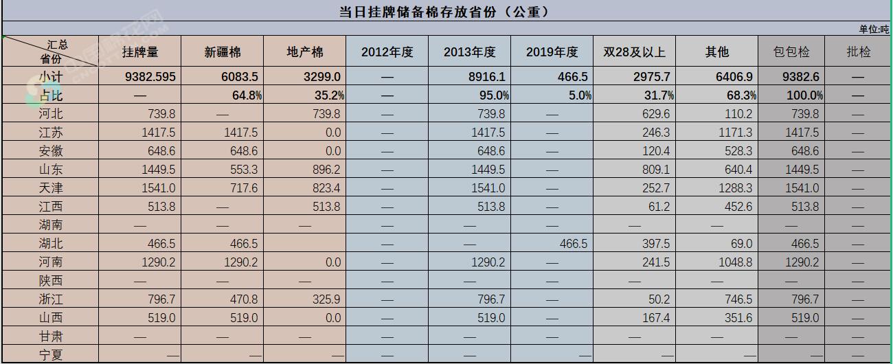 中國儲備棉管理有限公司定于8月10日上市銷售儲備棉重量9382.5948噸,共41捆,其中新疆棉6083.55噸。