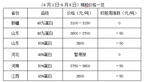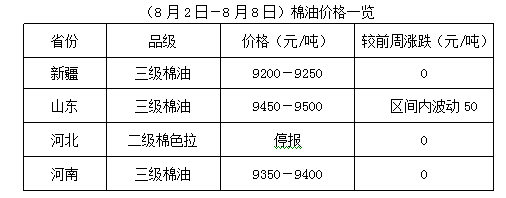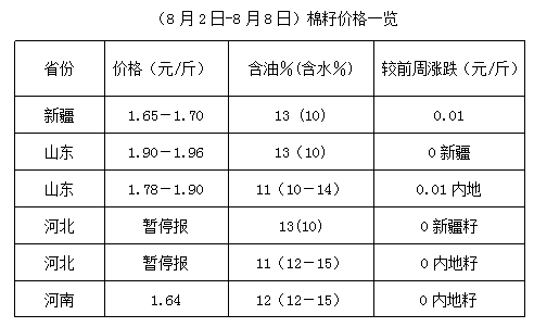 上周(8月2-8日),豆油、豆粕期貨震蕩難穩(wěn),整體漲少跌多,現(xiàn)貨行情進一步調(diào)整。目前棉籽處青黃不接之時,棉籽貨少價高,油棉廠開工率較低,棉油、棉粕多持價運行,但下游采購謹慎,成交不快,棉短絨貨少價堅,季節(jié)性特點明顯。內(nèi)地油棉廠開工特點多為斷續(xù)開工,整體購銷少量。
