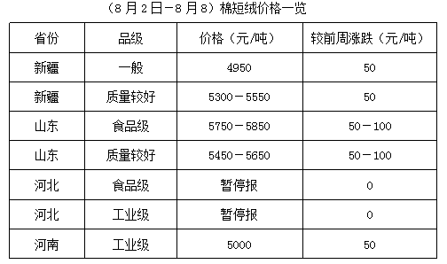 上周,持籽商雖積極出貨,但棉籽價格仍難回落,成本居高難下,加之棉油、棉粕出貨不快,油棉廠經(jīng)營無利,廠家對棉短絨寄望高價。因油棉廠開工率較低,棉短絨產(chǎn)出量少,多數(shù)廠家已無貨,貨少廠家持絨觀望。但因下游化纖廠、精制棉廠隨用隨購,高位采購少量,限制棉短絨上漲幅度。離新棉籽上市仍有一段時間,未來棉短絨高價難下。