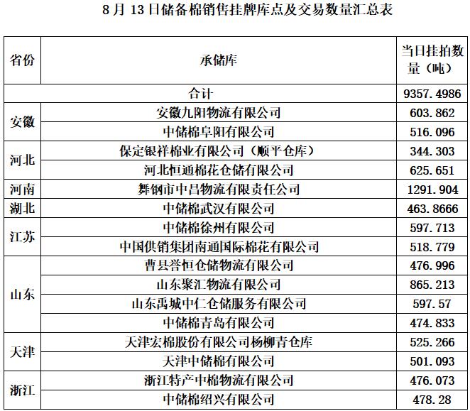 1、8月13日上市銷(xiāo)售儲(chǔ)備棉數(shù)據(jù)明細(xì)表(包包檢)