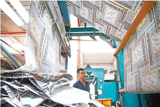“嘉華印染”車間里,員工們忙著布匹打樣、染色、定型;而在“西大門新材料”,各類窗簾、遮陽布從劍桿織機(jī)等紡機(jī)上飛速制造??聵騾^(qū)各大紡織印染企業(yè),機(jī)杼聲聲,產(chǎn)銷兩旺。