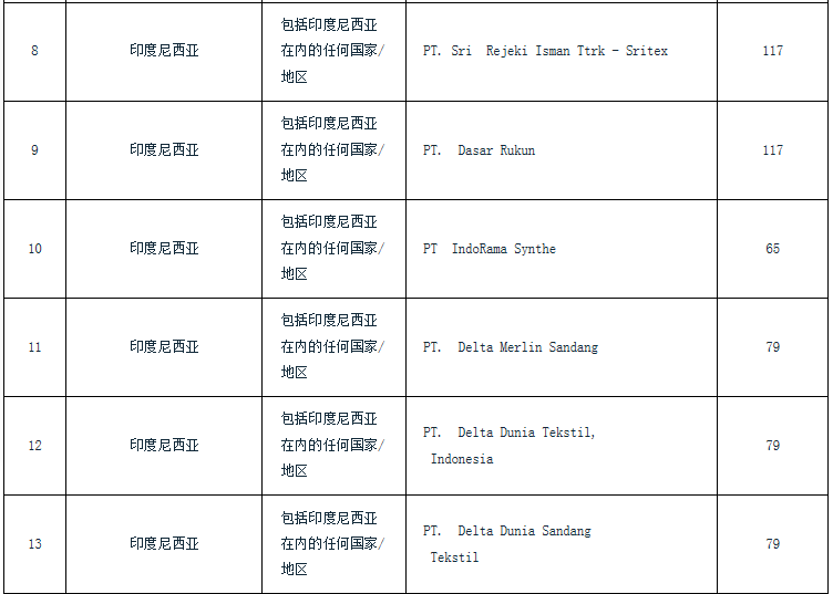 附表:印度對(duì)涉華滌綸紗線反傾銷(xiāo)終裁建議征稅表