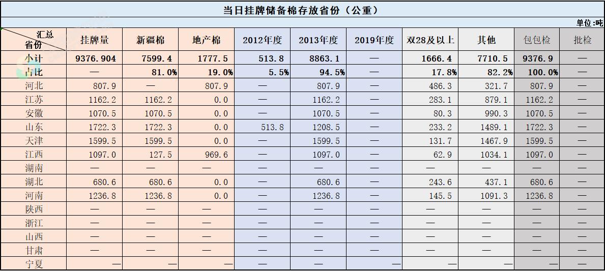 中國儲備棉管理有限公司定于8月26日上市銷售儲備棉重量9376.904噸,共42捆,其中新疆棉7599.40噸。