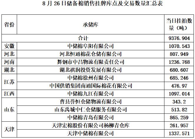 1、8月26日上市銷售儲備棉數(shù)據(jù)明細(xì)表(包包檢)