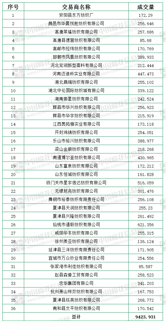7月5日至8月25日累計成交總量359929.9649噸,成交率100%。