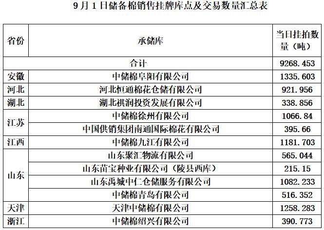 1、9月1日上市銷售儲(chǔ)備棉數(shù)據(jù)明細(xì)表(包包檢)