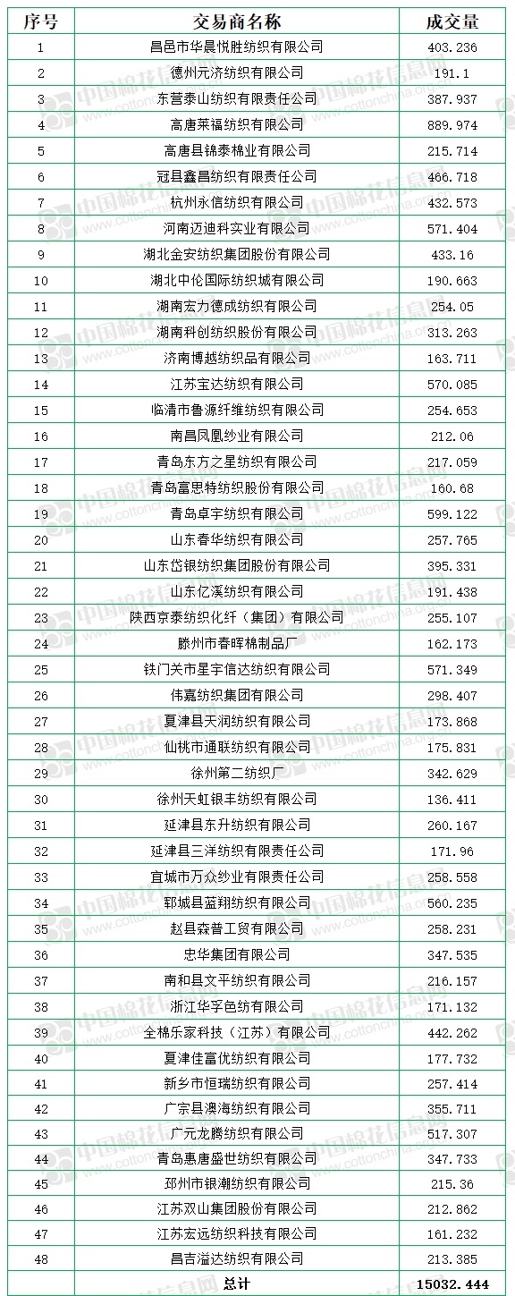 7月5日至9月6日累計成交總量440267.575噸,成交率100%。