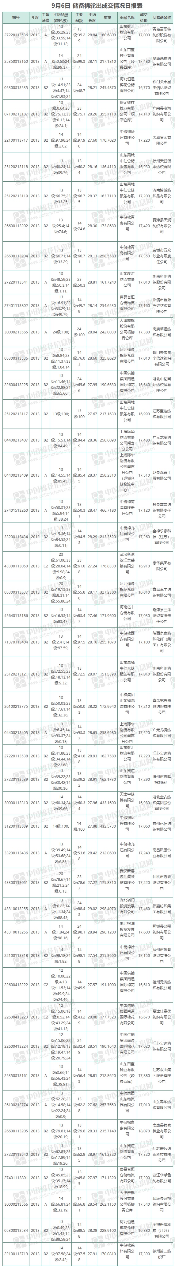 9月6日儲備棉輪出銷售資源15032.44噸,實際成交15032.44噸,成交率100%,成交均價17171元/噸,較3日下跌105元/噸,折3128價格18527元/噸,較3日下跌75元/噸。