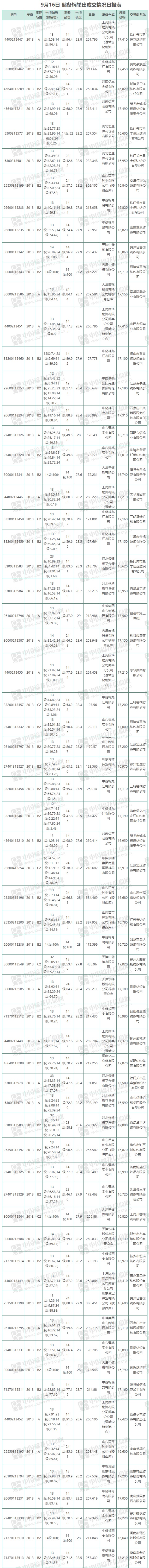 9月16日儲備棉輪出銷售資源15040.863噸,實(shí)際成交15040.863噸,成交率100%,成交均價17027元/噸,較15日上漲183元/噸,折3128價格18464元/噸,較15日上漲195元/噸。