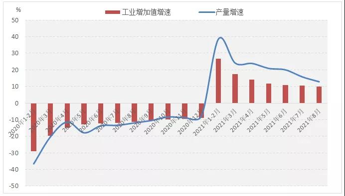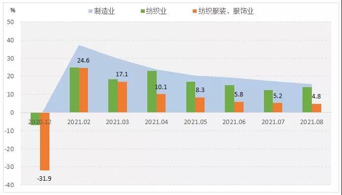 圖1.2021年1-8月服裝行業(yè)生產(chǎn)增速情況