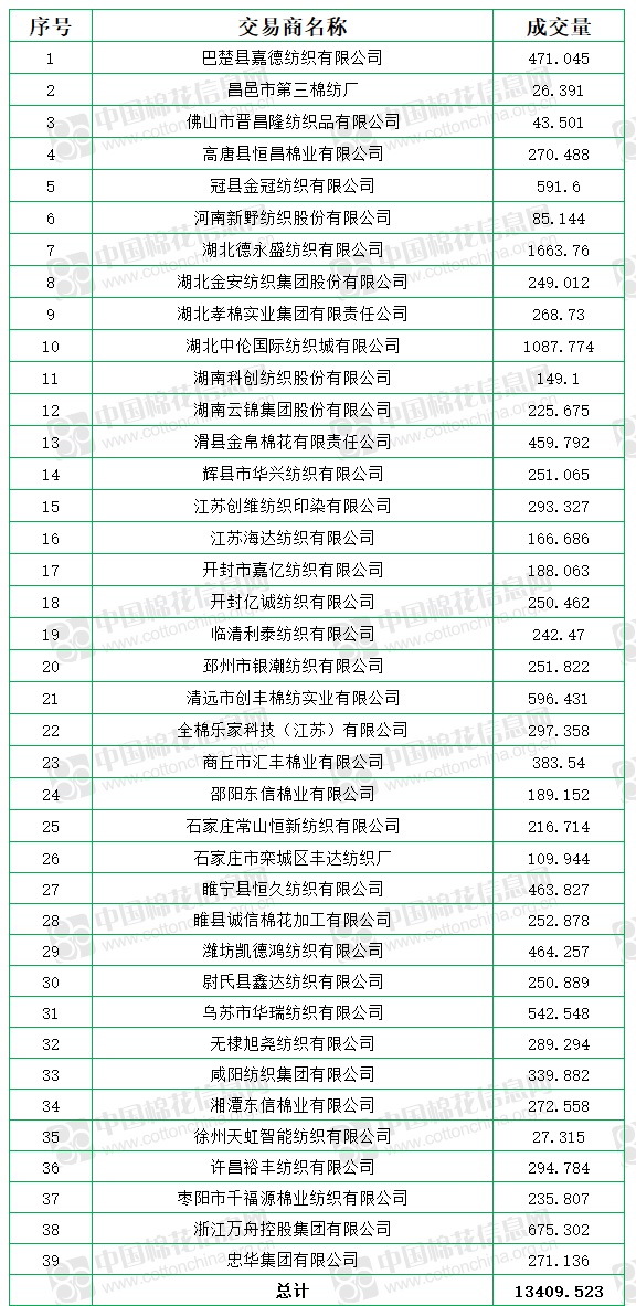 10月8日至10月19日累計(jì)成交總量155800.679噸,成交率79.49%。