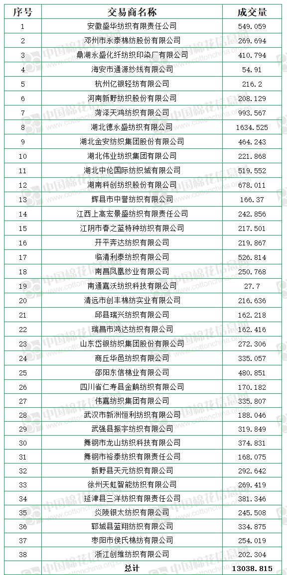 10月20日儲備棉投放銷售資源30080.20噸,實際成交13038.82噸,成交率43.35%,成交均價18533元/噸,較19日上漲146元/噸,折3128價格20608元/噸,較19日上漲426元/噸。