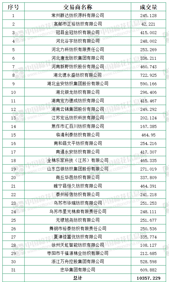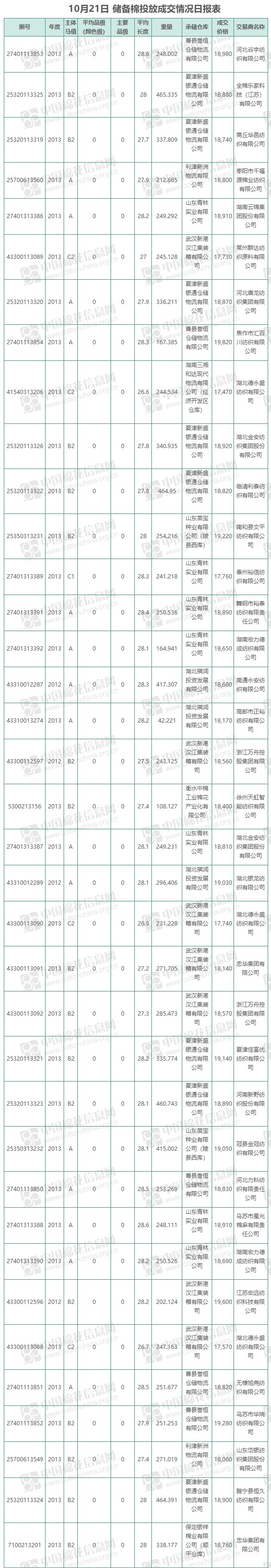 10月21日儲(chǔ)備棉投放銷(xiāo)售資源30068.361噸,實(shí)際成交10357.23噸,成交率34.45%,成交均價(jià)18712元/噸,較20日上漲179元/噸,折3128價(jià)格20414元/噸,較20日下跌194元/噸。
