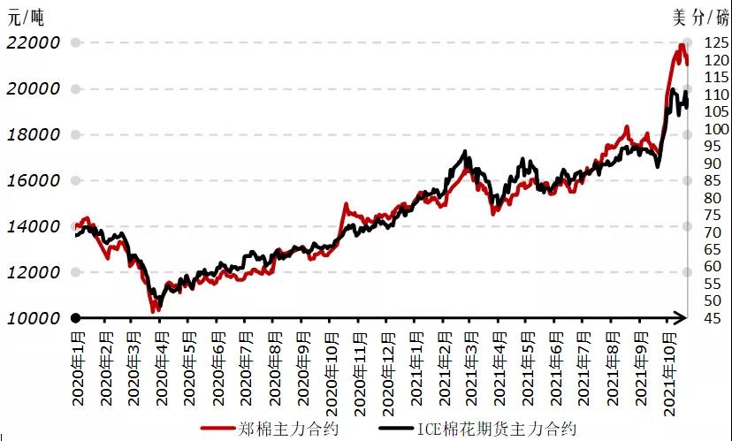 2021年10月以來,全球通脹壓力加劇,能源危機(jī)預(yù)期升溫,資金借機(jī)炒作大宗商品上漲。北半球棉花開始規(guī)模上市之際,棉價(jià)逆勢上漲,創(chuàng)近10年新高后轉(zhuǎn)向振蕩走弱,下一步行情走勢如何,本期月報(bào)將進(jìn)行探討。