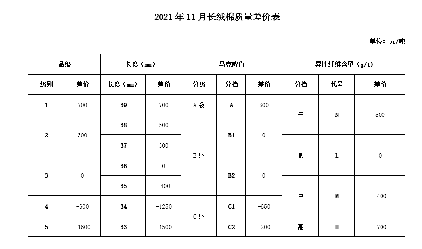 三、與上月相比,《長絨棉質(zhì)量差價(jià)表》保持不變。