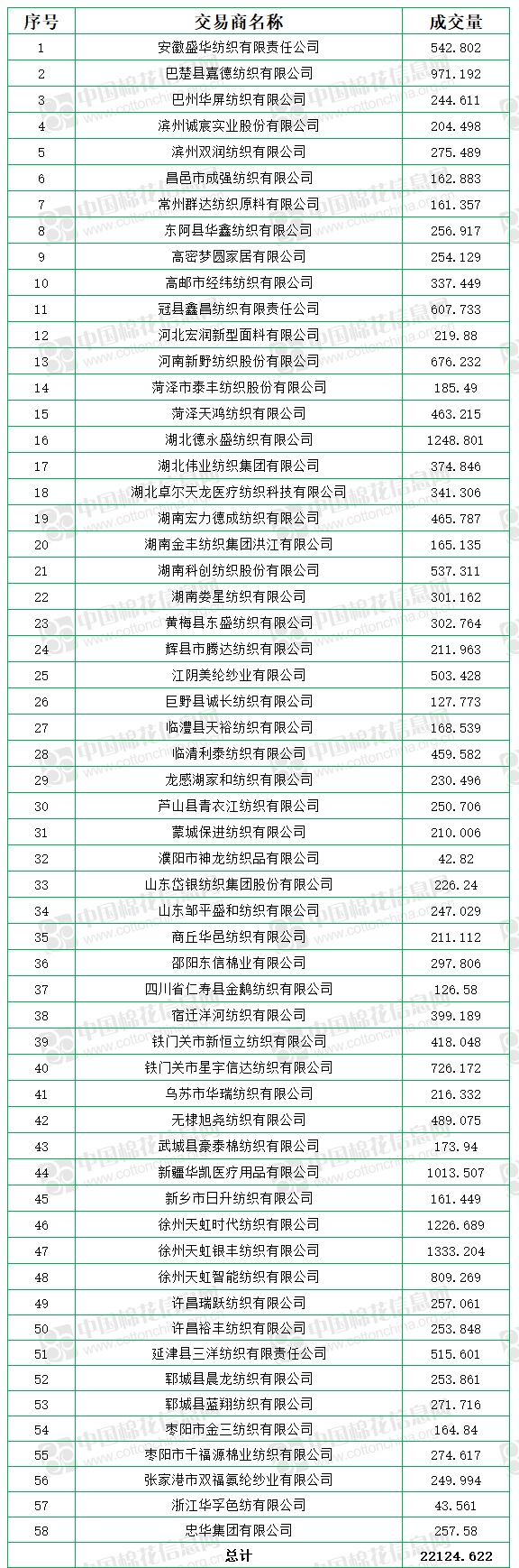 10月8日至11月1日累計(jì)成交總量268753.09噸,成交率57.63%。
