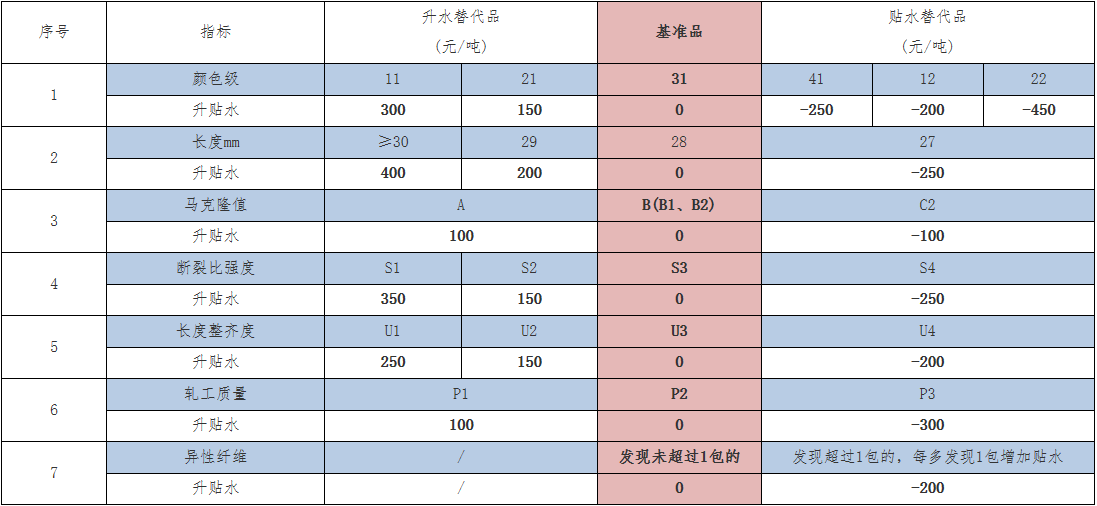 經(jīng)研究決定,現(xiàn)對(duì)棉花期貨替代交割品升貼水調(diào)整公告如下(見下表),自2022/23年度生產(chǎn)的棉花開始實(shí)施。