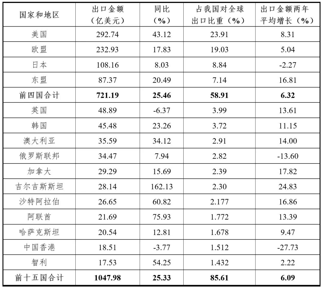 表1 2021年1-9月我國對部分國家和地區(qū)出口服裝情況
