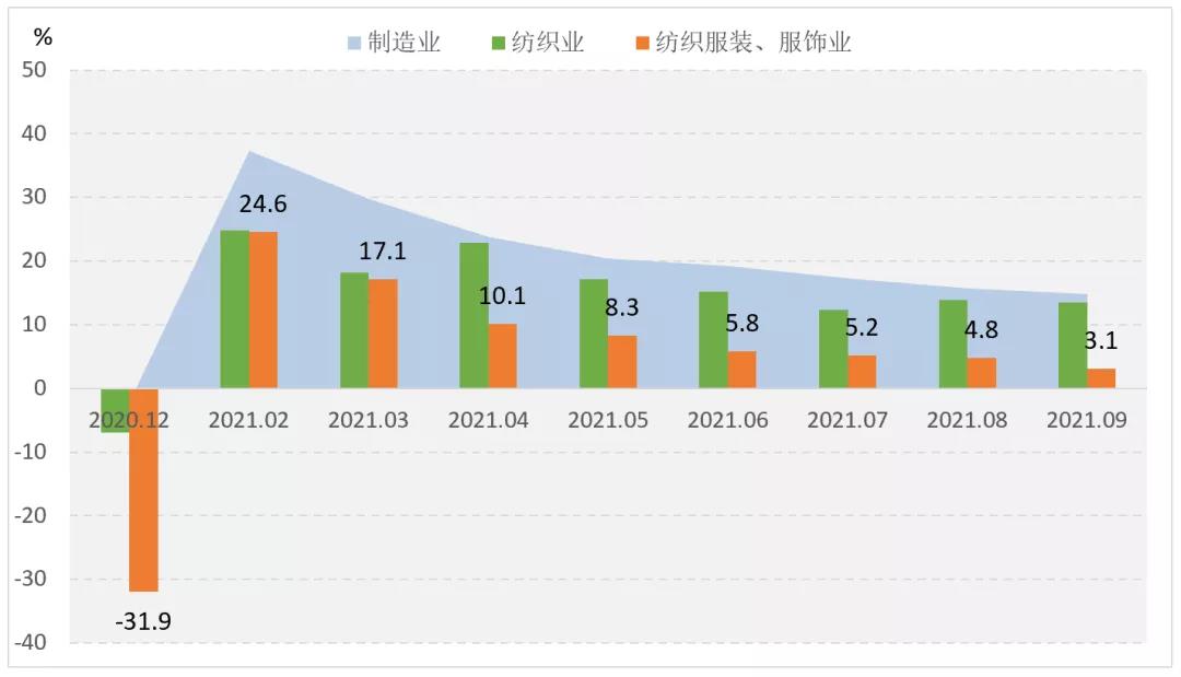 圖1 2021年1-9月服裝行業(yè)生產(chǎn)增速情況