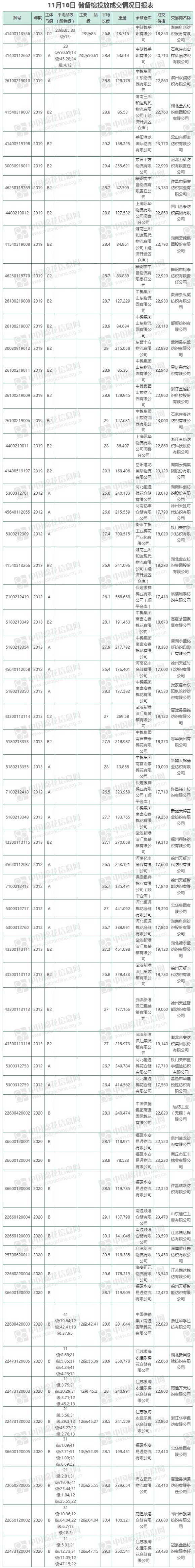 11月16日儲(chǔ)備棉投放銷售資源20038.238噸,實(shí)際成交12342.7噸,成交率61.6%,成交均價(jià)20182元/噸,較15日上漲67元/噸,折3128價(jià)格21453元/噸,較15日下跌28元/噸?!?/p>