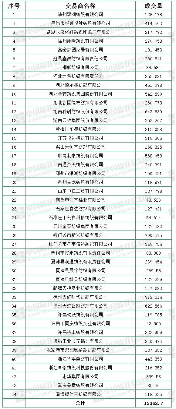 10月8日至11月16日累計(jì)成交總量454148.014噸,成交率60.82%。