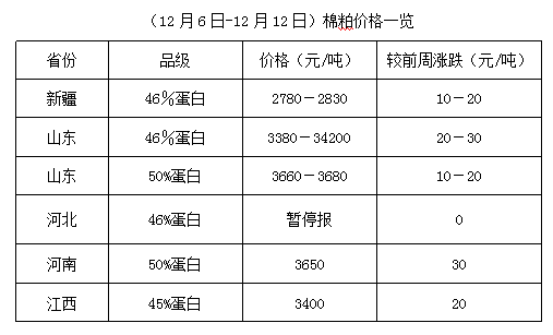 上周(12月6日-12月12日),豆油、豆粕期貨震蕩難穩(wěn),其中豆油先漲后跌,豆粕先跌后漲,現(xiàn)貨波動(dòng)調(diào)整,漲跌難穩(wěn)。棉油、棉粕出貨不佳,油棉廠經(jīng)營倒掛持續(xù),但棉籽降價(jià)幅度仍不理想,部分廠家停產(chǎn)、停收,以規(guī)避經(jīng)營風(fēng)險(xiǎn),個(gè)別少量收購,以加工前期棉籽為主,購銷無量,油棉經(jīng)營維持相對冷清狀態(tài)。