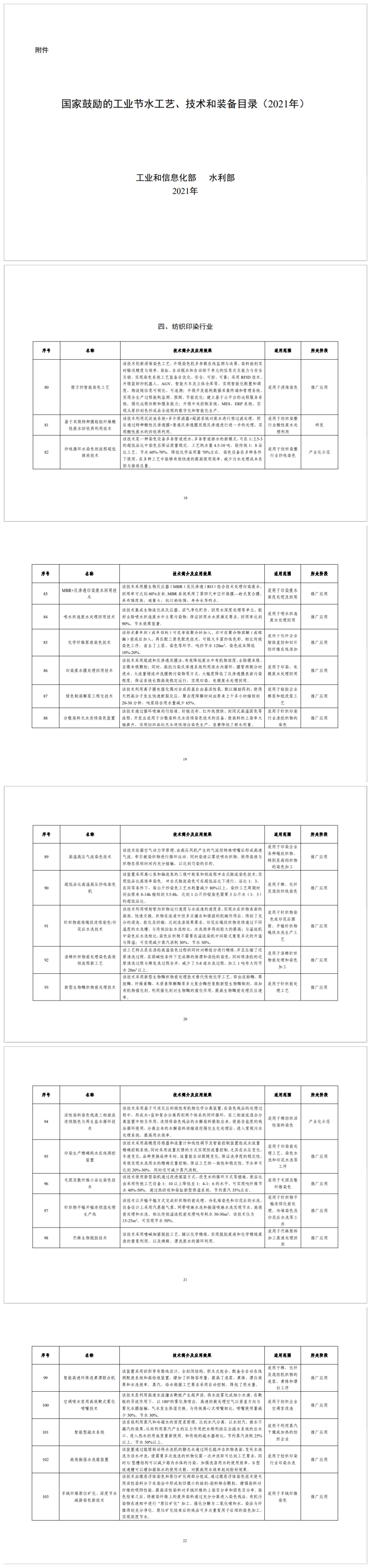 為加快推廣應(yīng)用先進適用節(jié)水工藝、技術(shù)和裝備,提升工業(yè)用水效率,工業(yè)和信息化部、水利部編制《國家鼓勵的工業(yè)節(jié)水工藝、技術(shù)和裝備目錄(2021年)》.pdf,現(xiàn)予公告?!秶夜膭畹墓I(yè)節(jié)水工藝、技術(shù)和裝備目錄(2019年)》同時廢止。