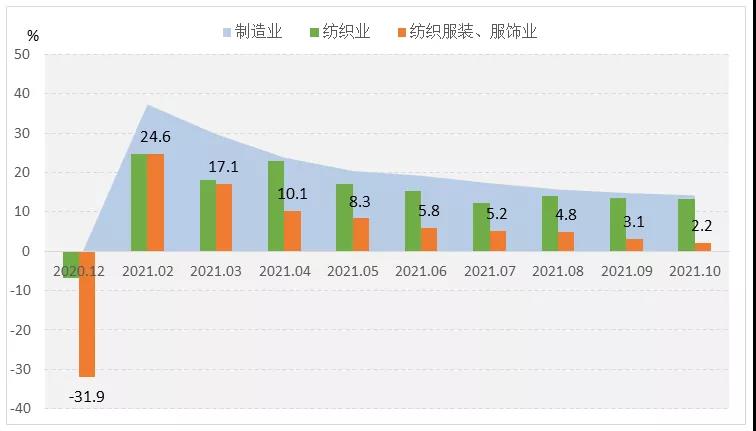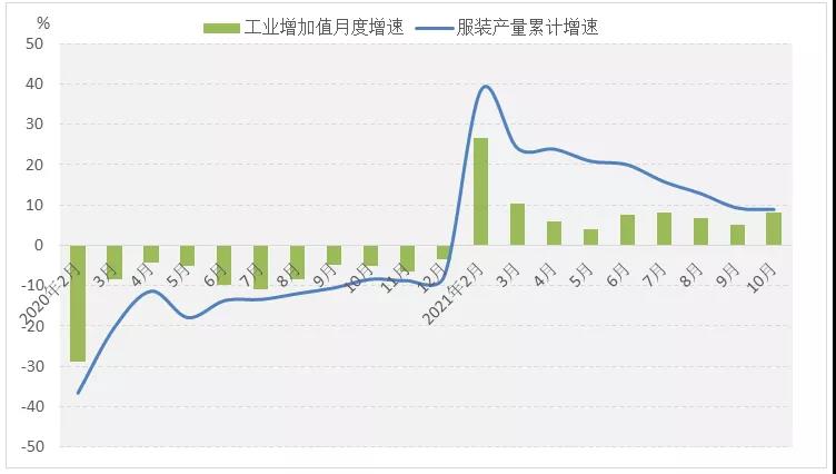 圖1 2021年1-10月服裝行業(yè)生產(chǎn)增速情況
