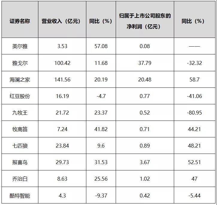 10家男裝上市企業(yè)2021年前3季度營(yíng)業(yè)收入357.16億元,凈利潤(rùn)66.35億元。其中海瀾之家、雅戈?duì)枲I(yíng)收超百億,紅豆股份、九牧王、七匹狼、報(bào)喜鳥(niǎo)營(yíng)收位于15-30億元區(qū)間,美爾雅、牧高笛、喬治白、酷特智能營(yíng)收在10億元以內(nèi);從企業(yè)層面看,海瀾之家、牧高笛、七匹狼、報(bào)喜鳥(niǎo)、喬治白5家企業(yè)實(shí)現(xiàn)營(yíng)收凈利潤(rùn)雙增,紅豆股份、酷特智能的營(yíng)收凈利潤(rùn)雙降。