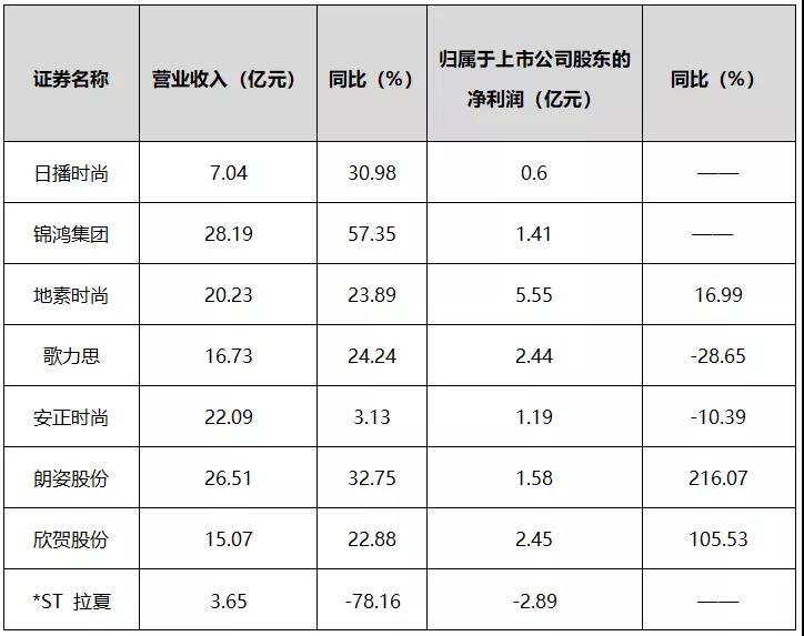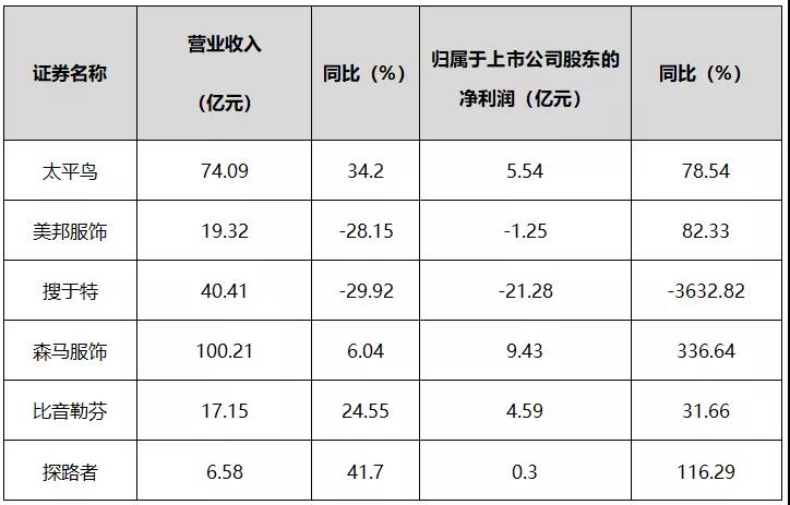 表1:男裝上市企業(yè)運(yùn)行情況