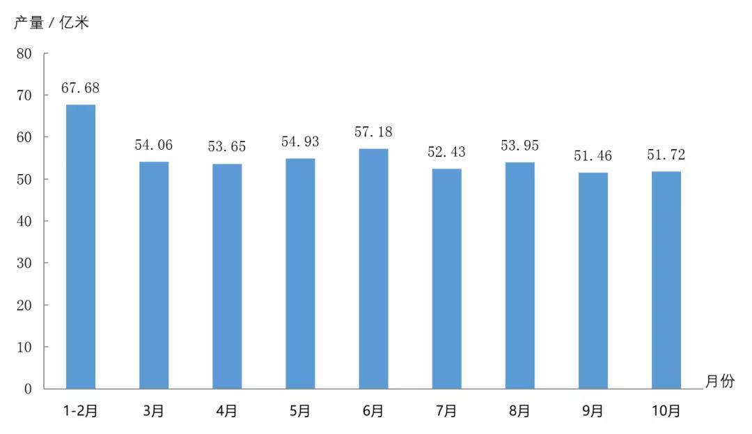 圖1 2021年前10個(gè)月規(guī)上企業(yè)印染布當(dāng)月產(chǎn)量情況
