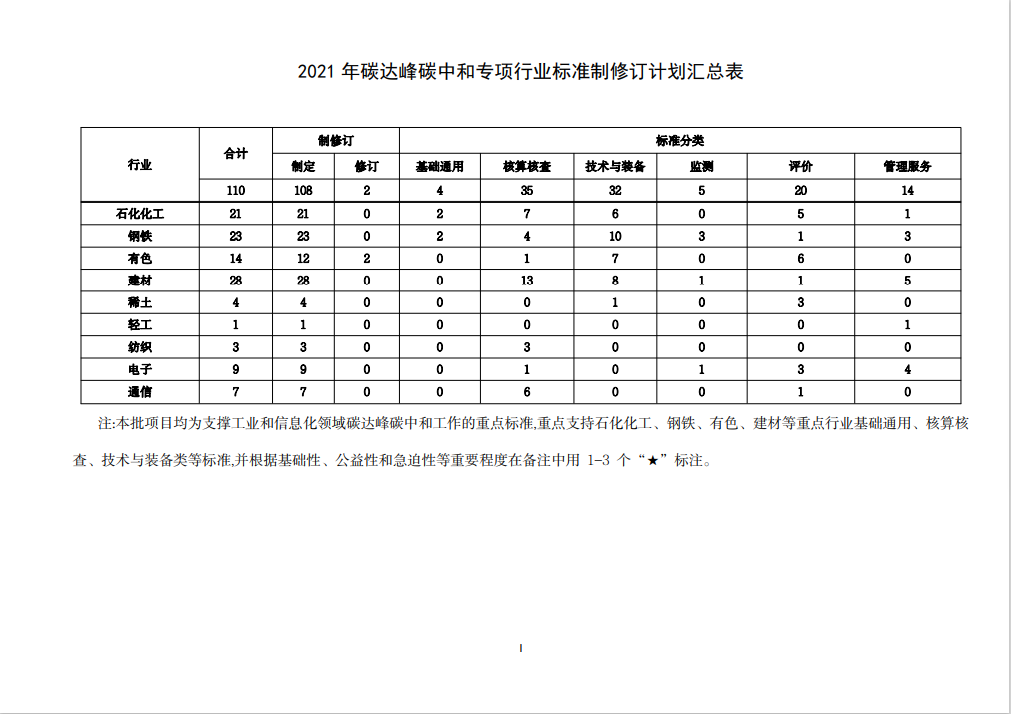 工信部辦公廳關(guān)于印發(fā)2021年碳達(dá)峰碳中和專項(xiàng)行業(yè)標(biāo)準(zhǔn)制修訂項(xiàng)目計劃的通知