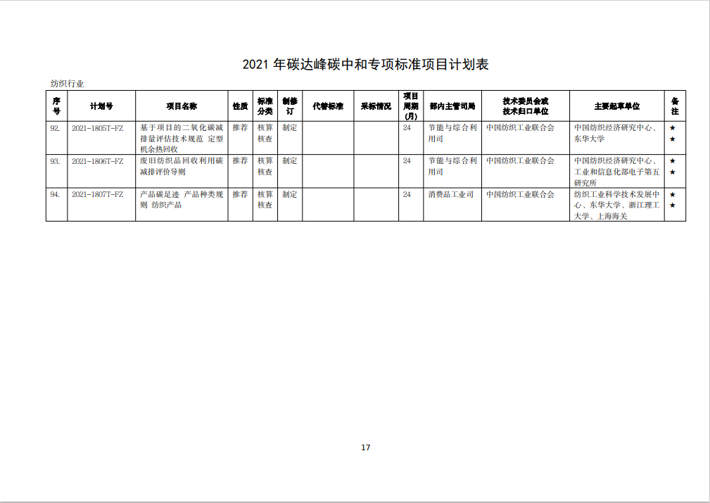 為發(fā)揮標(biāo)準(zhǔn)在推進(jìn)工業(yè)領(lǐng)域碳達(dá)峰碳中和工作的引領(lǐng)和規(guī)范作用,我部編制完成了2021年碳達(dá)峰碳中和專項(xiàng)行業(yè)標(biāo)準(zhǔn)制修訂項(xiàng)目計劃?,F(xiàn)印發(fā)給你們,請認(rèn)真組織落實(shí)。有關(guān)事項(xiàng)通知如下: