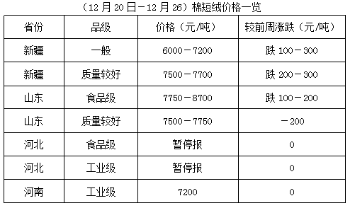 上周棉短絨供應(yīng)量不大,因下游化纖廠、精制棉廠采購觀望態(tài)度較強,需求仍較一般。油棉廠順價出貨,多數(shù)報價持續(xù)下跌,但棉短絨多處有價無市狀態(tài),成交無量。節(jié)前棉短絨行情難穩(wěn),購銷博弈仍將持續(xù)。