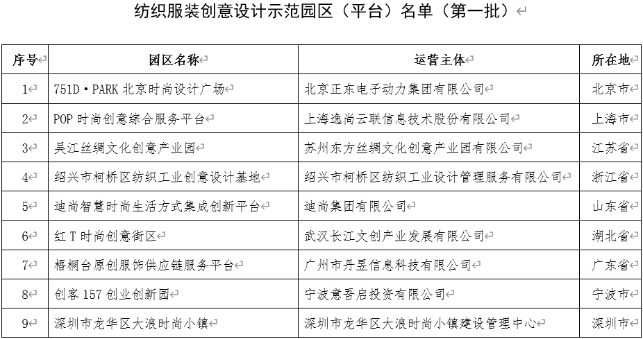 附件1:紡織服裝創(chuàng)意設(shè)計(jì)示范園區(qū)(平臺)名單(第一批)