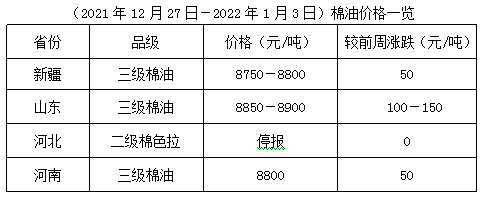 上周(2021年12月27日-2022年1月3日),豆油、豆粕期貨震蕩調(diào)整,棉油、棉粕走貨緩慢,棉籽價(jià)格企穩(wěn)止跌,個(gè)別地區(qū)價(jià)格有漲,油棉廠加工倒掛持續(xù),部分油棉廠提前放假停工,其余廠家堅(jiān)持收購(gòu)加工,表現(xiàn)波瀾不驚。