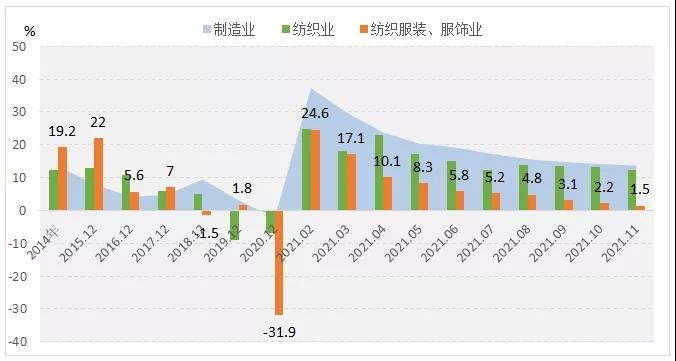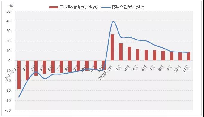 圖1 2021年1-11月服裝行業(yè)生產(chǎn)增速情況