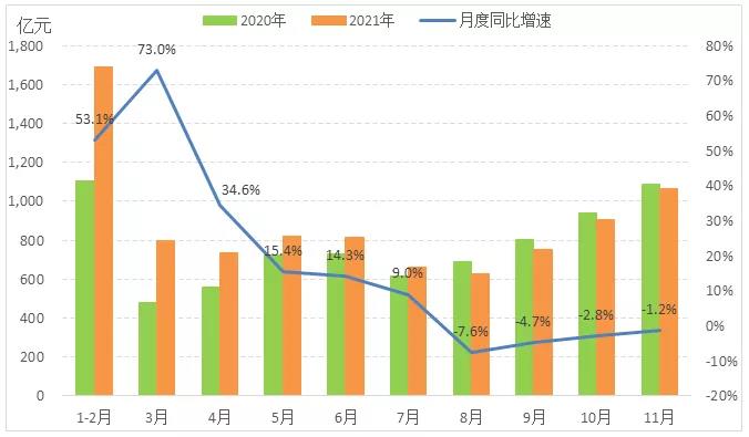 1.2021年1-11月服裝行業(yè)經(jīng)濟運行情況