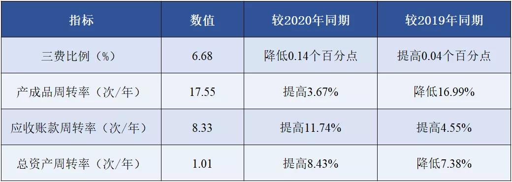 據(jù)國(guó)家統(tǒng)計(jì)局?jǐn)?shù)據(jù),2021年1-11月印染行業(yè)規(guī)模以上企業(yè)三費(fèi)比例6.68%,同比降低0.14個(gè)百分點(diǎn),其中棉印染企業(yè)為6.53%,化纖印染企業(yè)為7.80%;產(chǎn)成品周轉(zhuǎn)率17.55次/年,同比提高3.67%;應(yīng)收賬款周轉(zhuǎn)率8.33次/年,同比提高11.74%;總資產(chǎn)周轉(zhuǎn)率1.01次/年,同比提高8.43%。與2019年同期相比,印染行業(yè)規(guī)模以上企業(yè)三費(fèi)比例提高0.04個(gè)百分點(diǎn),產(chǎn)成品周轉(zhuǎn)率和總資產(chǎn)周轉(zhuǎn)率分別降低16.99%和7.38%,應(yīng)收賬款周轉(zhuǎn)率提高4.55%,見(jiàn)表2。