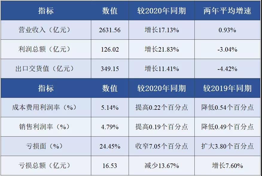 表2 2021年1-11月規(guī)模以上印染企業(yè)主要運(yùn)行質(zhì)量指標(biāo)