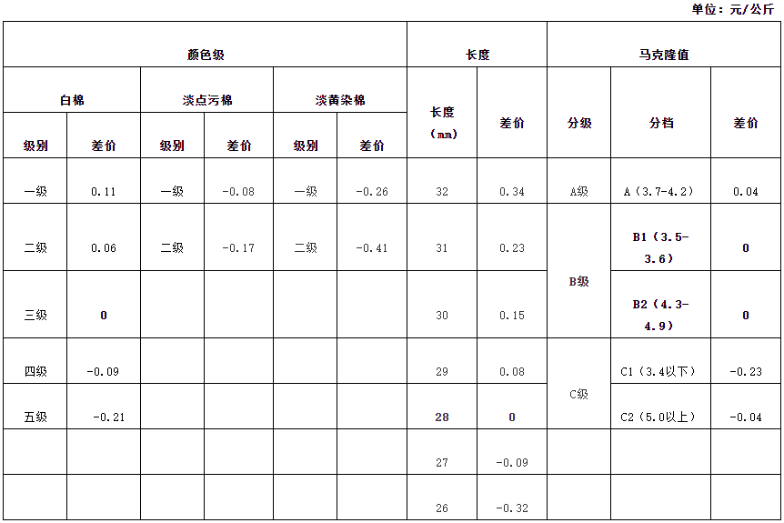根據(jù)《中國棉花協(xié)會籽棉收購結(jié)算差價參考表(新疆細(xì)絨棉)管理辦法》規(guī)定,依據(jù)中國棉花協(xié)會發(fā)布的2022年2月《鋸齒加工細(xì)絨棉質(zhì)量差價表》和中國棉花預(yù)警系統(tǒng)2021年9月至2022年1月新疆籽棉收購平均衣分率數(shù)據(jù),折算得出籽棉收購差價,現(xiàn)正式發(fā)布2022年2月《籽棉收購結(jié)算差價參考表(新疆細(xì)絨棉)》(單位:元/公斤),為新疆地區(qū)籽棉收購工作提供參考。