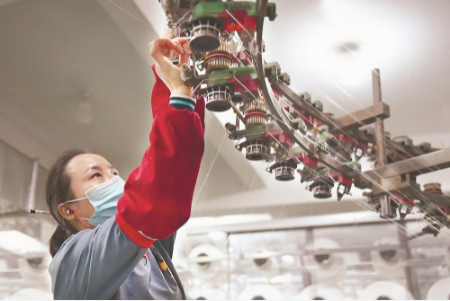 2月13日,位于惠安縣溪東工業(yè)區(qū)的福建新同興針紡織有限公司車間里,工人在加緊生產(chǎn)校服原材料面料。該公司專注于面料和校服生產(chǎn),擁有國內(nèi)先進(jìn)校服生產(chǎn)設(shè)備100多臺,年制作校服超100萬件,預(yù)計2022年第1季度產(chǎn)值在5000萬元左右。